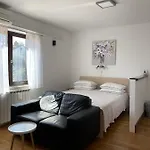 This apartment has a fridge, a cooktop, and kitchenware in a fully equipped kitchen. Self-catering facilities also include coffee and tea making equipment. The property is in proximity to the barbecue Konoba Kvartin.